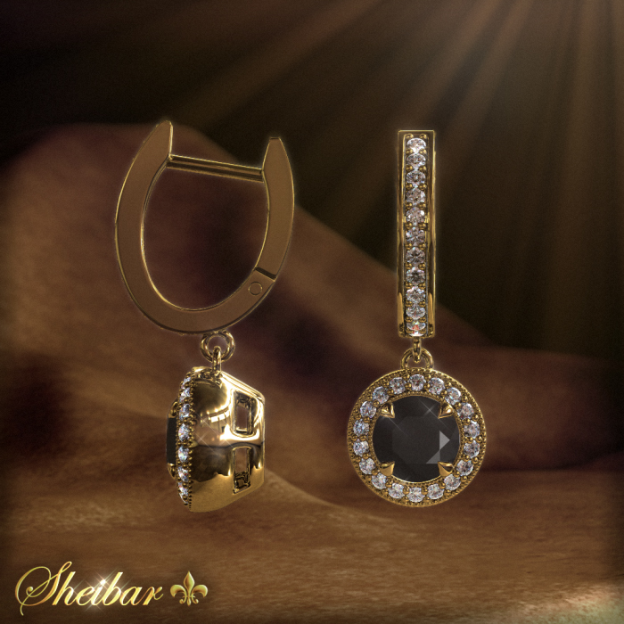 An impressive and prestigious earring that combines 2 styles of earrings. The first part is a "U" stud that sits on the ear, with delicate, beautiful diamonds embedded throughout. While in the second part you can see a hanging part of a gold frame around which there are small diamonds, centered on a large and impressive central diamond. The entire earring is actually studded with diamonds, giving a sparkling and impressive effect to the jewelry. The work of goldsmithing and placement was done at the highest level, in order to pay between these two types of earrings into one beautiful and impressive piece of jewelry. The main emphasis of this earring is the combination of white and black diamonds, highlighting and emphasizing the black diamonds in the center of the jewel.