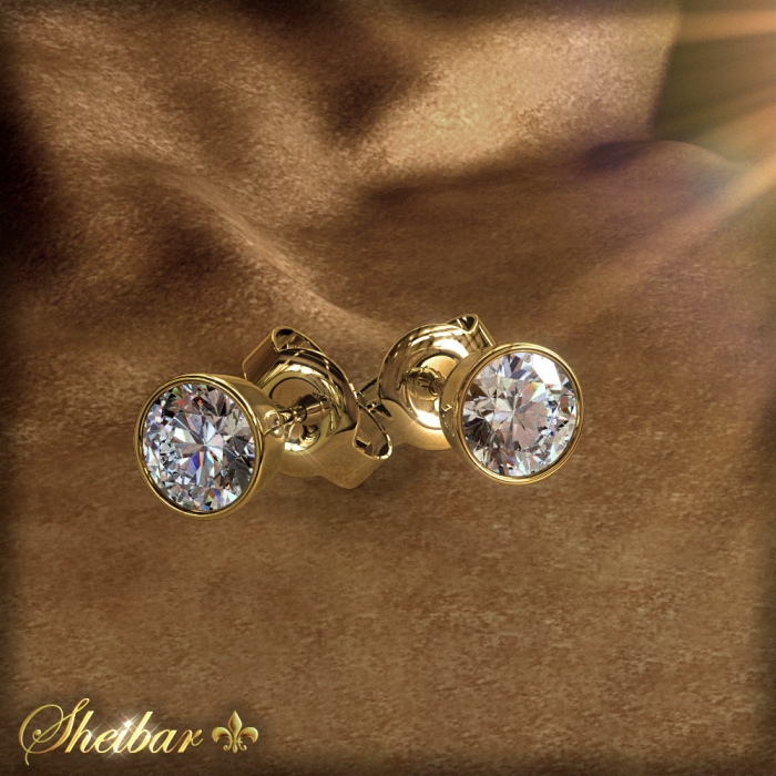 lassic diamond earrings attached to the ear, set on a delicate gold hoop that adds to the size and presence of the earrings. The gold circle around the diamond also adds to the safety of the diamonds, and adds to the diameter of the diamonds, thus making the diamonds look bigger and more impressive. Closing the earrings is done with a click closure, which is most convenient. Classic and beautiful earrings .