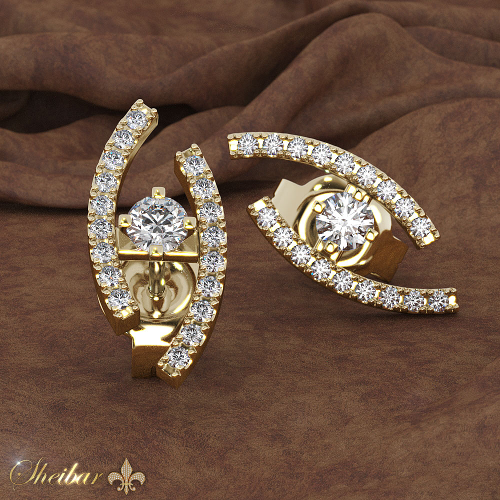 Unique earrings with a very special design with rounded asymmetrical design. These earrings are tight, but possess two arms that surround and emphasize the diamond center. Each arm is studded with a row of diamonds with each diamond held in 4 teeth. Among them is a central diamond that is also studded with 4 teeth. Earrings for people who like things "out of the box" but want a gentleman.