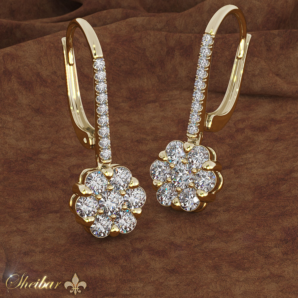 Earrings that are reminiscent of the "Yu Flower Earrings" model, but the main difference is that here at the top we have a more classic bracket - the English bracket. What distinguishes this model is that the English shutter is also embedded in a line of natural diamonds. Below it is a flower made of solid gold and seven natural diamonds that together create a uniform look.