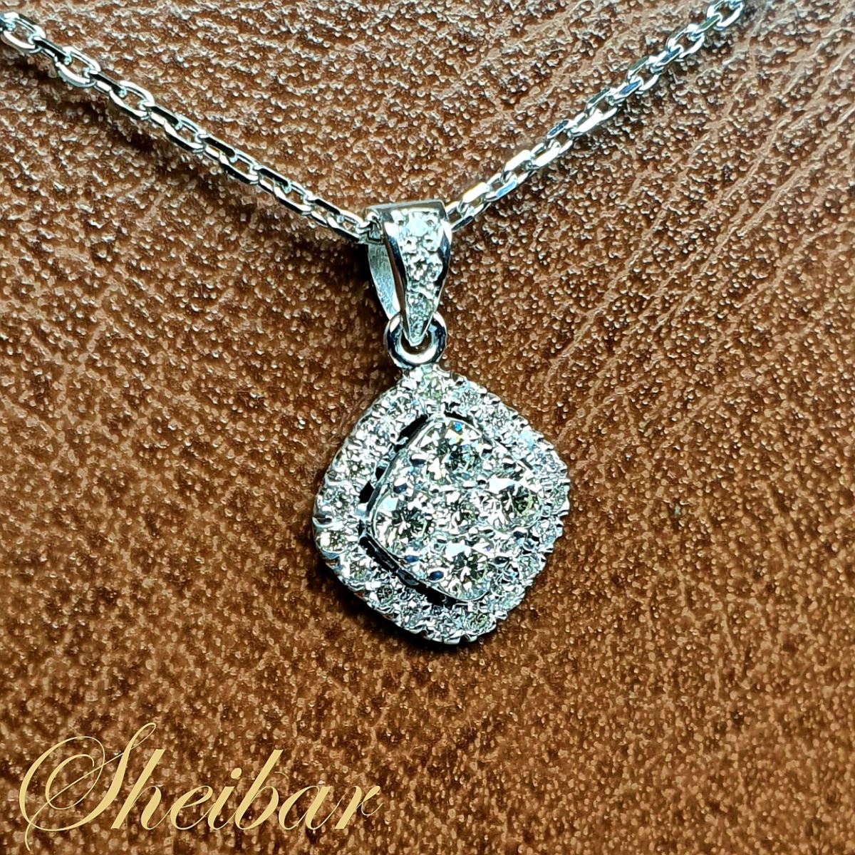"Mini shield" pendant. This pendant is the small version of the successful pendant "Shield". The pendant is built on the same idea of a diamond carpet in the center to create a look of uniformity and a large center. And around the 2nd place we left one row of diamonds to refine but to emphasize the center