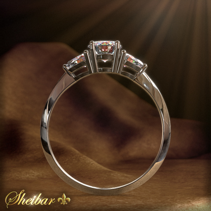 Engagement rings, model "Trillion Drop", an interesting and classic ring. The first and most special thing in this ring to be noticed is the shape of the diamonds on both sides of the ring. These diamonds are peared in the shape of PEAR (drop) embedded in the ring. The ring itself was made in a unique and delicate work of silversmithing, thus maintaining its unique shape. At the center of the ring will be the large and beautiful central diamond found among the drop diamonds, set on four high teeth of the two diamonds in order to emphasize and impress as much as possible. All the stones are embedded on top of gold, which is done in a smooth and narrow work, in order to get the most attention to the stones in the center. An amazingly luxurious ring