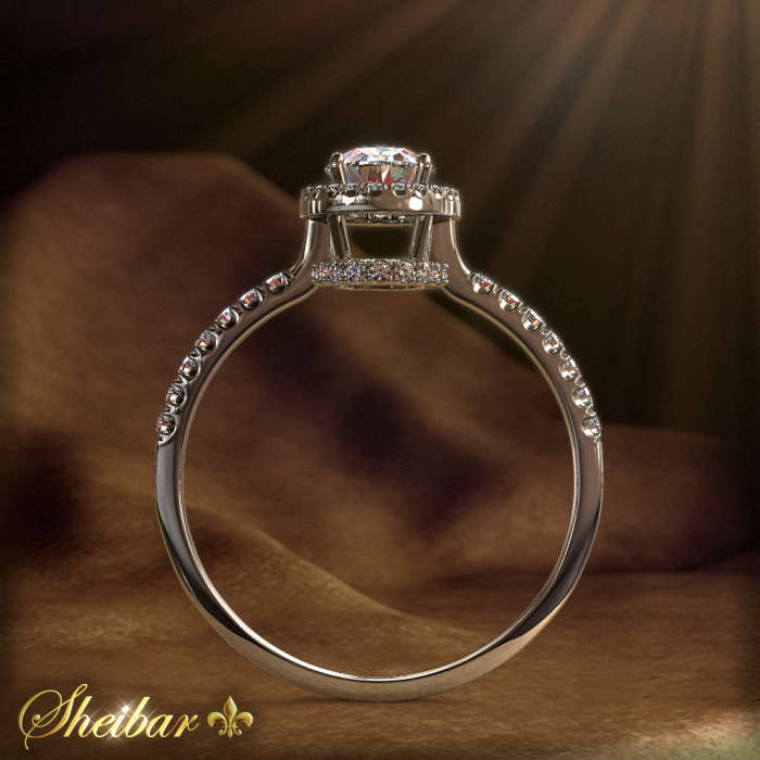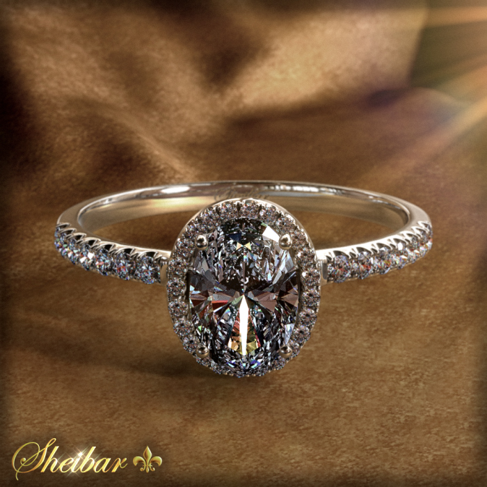 "oval" ring .The base and ring are made in a classic and delicate style, with 14 beautiful small diamonds on either side of the ring. While most of the ring is in the head, when the design and work of the head was done with special casting and delicate work and prestigious in order to distinguish the work of the ring and its shape from others. The head of the ring is made up of two circles connected to each other, with a total of about 28 beautiful white diamonds on the top, and on the top of the ring, the diamond is a unique "oval" diamond.