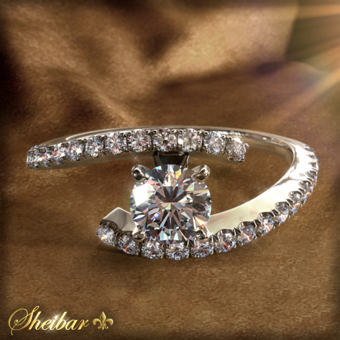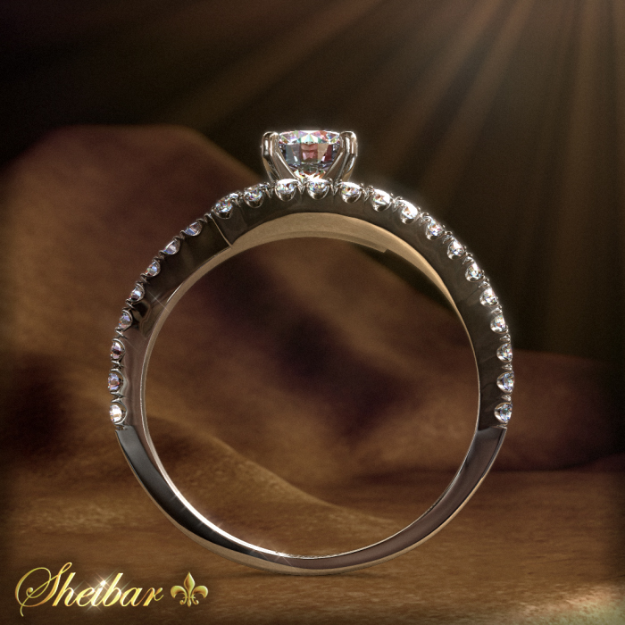 Engagement ring "Magnolia", one of the most impressive and beautiful rings among existing models. You can see the small diamonds being made by "teeth" to maximize the presence of small diamonds (a total of about 30 diamonds.) The gold work was made especially for the ring to maintain a symmetrical and precise twist. Between the two small diamond arches, a ring whose shape and shape are designed to fit perfectly on the finger and in the most comfortable way possible