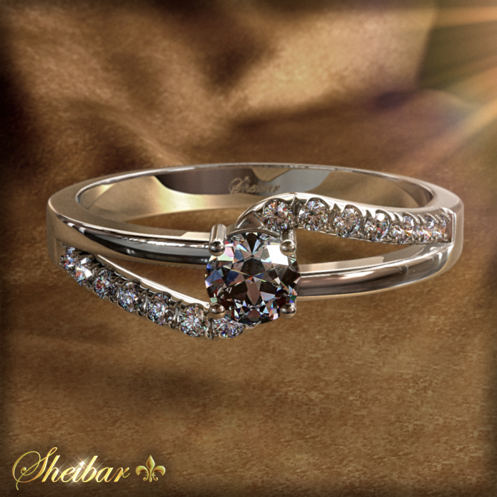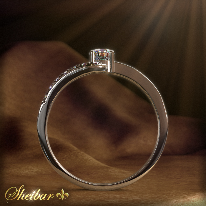 Engagement rings, "Tulip" ring in an interesting and unique design. First the ring model was made in precise casting and in smooth, clean gold work. The ring has a split of two delicate and beautiful gold arches, while one side is studded and one side is not, which distinguishes the ring and gives it an impressive and beautiful shape. The four golden arches connect at the top of the ring, with a head at the center of the diamond centered on the size of the diamond. An amazingly unique ring