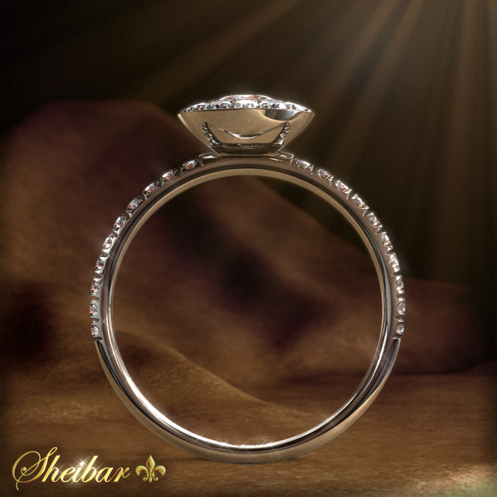 "Aspen" Diamond Ring. A ring studded around the center diamond with small white diamonds. The ring comes in a round shape and can be changed on demand in a square shape. At the top of the ring is the central diamond embedded in a "cup" embedded in the ring and surrounded by a thin, thin gold hoop (you can also remove the center diamond on demand). Unique and beautiful ring.
