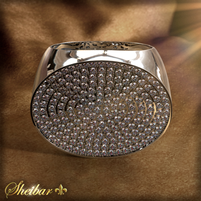 "OVALHULET" diamond ring, oval shaped. This large and impressive ring was made in special casting work, due to its size and the number of stones in it. The gold work was done smoothly and brilliantly, with the ring rounded from all angles to maximize the comfort of its size. On the upper part of the ring you can see a large and wide surface of oval-shaped gold. On this surface are 188 beautiful and white diamonds, hand-crafted at a high precision level, in order to maintain precise and symmetrical work. The placement work was done in circles, from the outside to the inside, thus creating many circles one by one. An impressive ring with a spectacular and sparkling presence