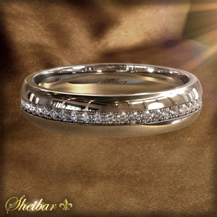"sheibar" ring -A round diamond ring with a width of 5 mm of solid gold, with one row of beautiful white diamonds, with diamonds embedded in the ring, and a straight line with the ring (about 52 diamonds