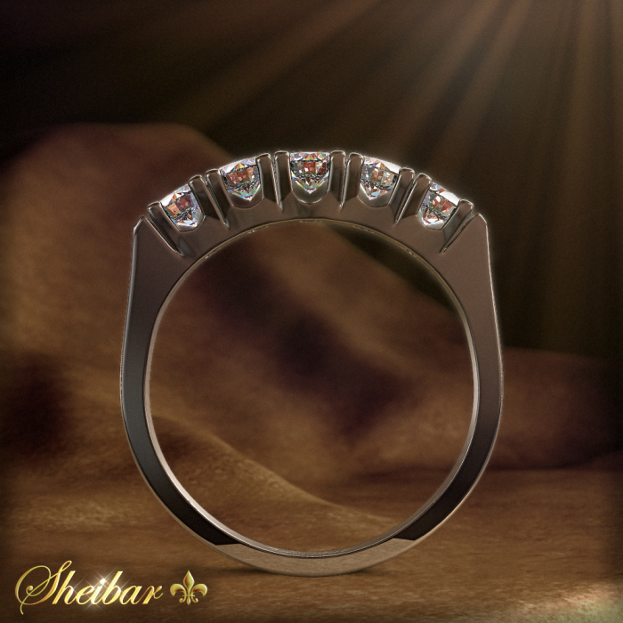 Diamond Ring , 5 "Diamond" Ring. An impressive ring and unique workmanship. The outstanding feature of this ring is the impressive size of the diamonds. 5 diamonds, each with 0.20 carats, a total of 1.00 carats in a whole ring Set in impressive and beautiful teeth to maximize the presence and sparkle of the jewelry The gold of the ring is a prestigious 18K gold made with precision and symmetrical laser work In order to keep the finishing and polishing work from the highest ... From the profile you can see that each diamond stands on the crown of a crown that holds it, a brilliant gold crown.