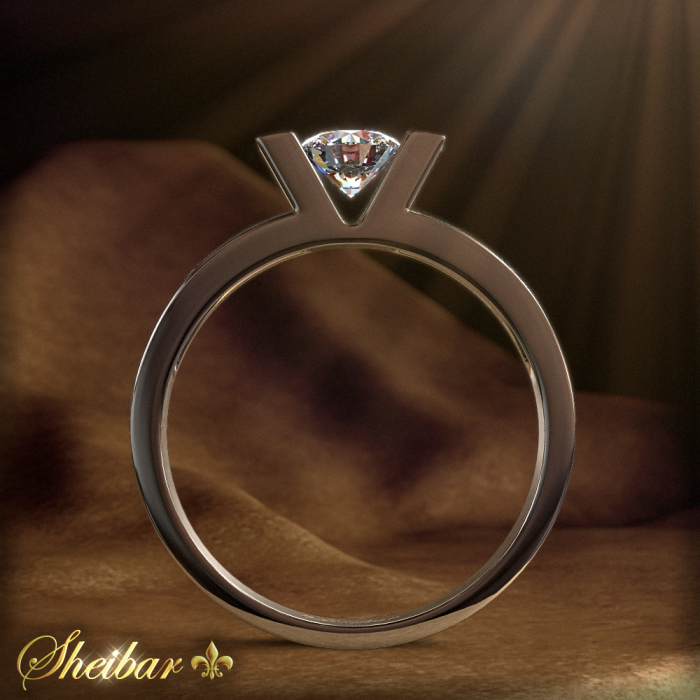 Diamond engagement ring, "Vivian", high quality and prestigious. The work of gold was done with high quality work and finishing, and the work was very symmetrical, by special casting for the ring . Clean and smooth gold work. At the end of the ring you can see the main head coming out of the ring and continuing upward in the special "V" shape, which allows you to see the diamond from the ring profile in full visibility. This unique inlay reveals the main diamond in its entirety and maximizes the sparkle of the diamond