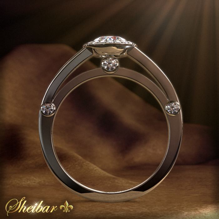 Diamond engagement ring, Stephanie", in exceptional design. The ring itself was designed and composed of 3 different parts that complement the perfect result of this ring. A ring that can not be missed on any hand. With a large central diamond embedded in its head, and a circle of small diamonds around the "mirror" to increase the center diamond. On both sides of the ring profile you can also see three more large diamonds that are embedded along the ring at precise and equal intervals. No doubt a rich and prestigious ring.