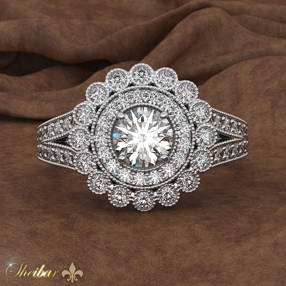 Engagement ring "Ancient Rose ". A beautifully designed and impressive ring. The ring itself consists of 3 parts, which eventually combine to one perfect ring. First of all comes the foundry of the ring base itself, which is studded with diamonds on both sides of the ring. 2 other parts that connect to the ring are the 2 gold hoops that sit at the top of the ring. Each of which is also studded with clean white diamonds, each hoop in a different shape and a different polishing, with the big outer hoop reminiscent of small delicate flowers. In the center of the whole jewel is the central diamond, which serves as the last emphasis to complement all this magnificent and beautiful work. High quality polishing and embedding Without a doubt a special ring in a personal design.