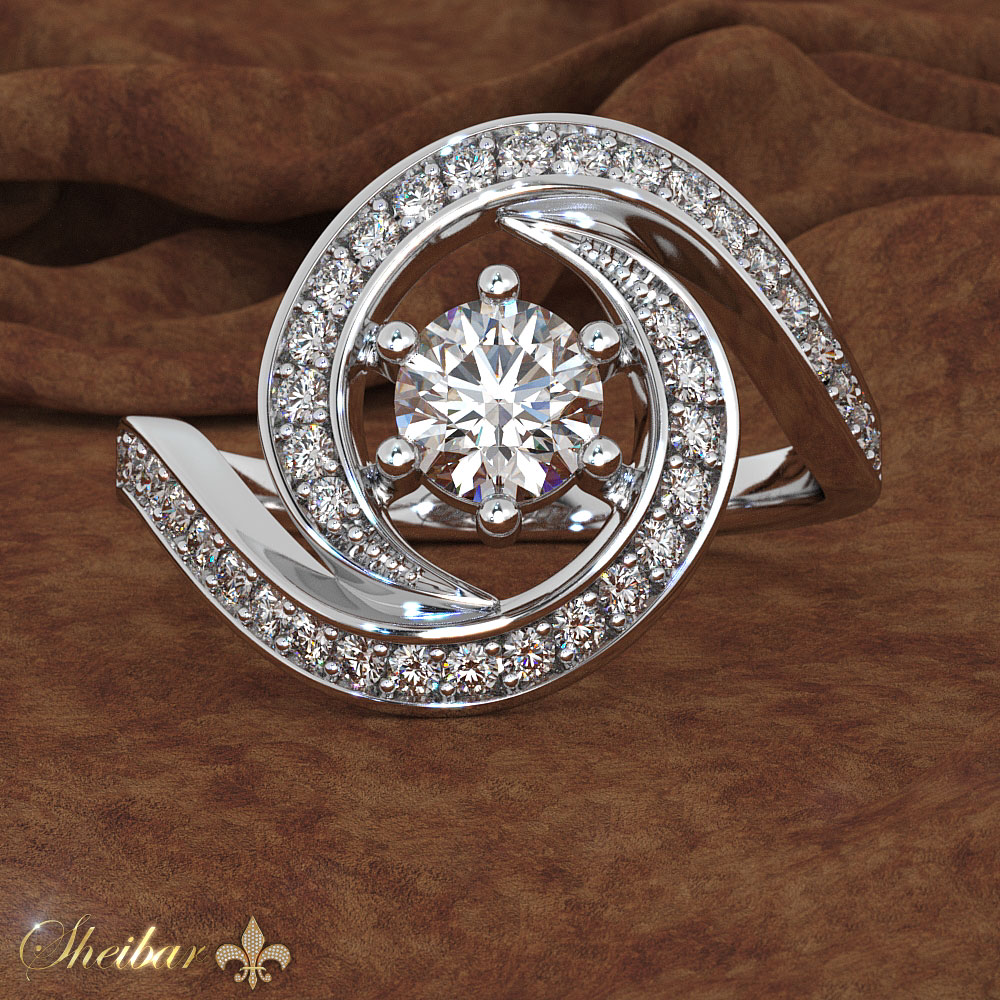 Engagement ring and diamonds - Model: "Tornado" engagement ring with lots of presence, lots of character and lots of beauty ... The ring is reminiscent of its "tornado " look by its teeth that starts from the bottom, smooth and straight and towards the top connect into a diamond circle . The diamonds were selected from big to small to create balance and depth in the design.The head of the ring is in the same line with the upper circle, connected with 4 strong but gentle teeth. In the center is a natural diamond held with 6 teeth. This engagement ring is a unique ring in its design, its exactly and in its presence.