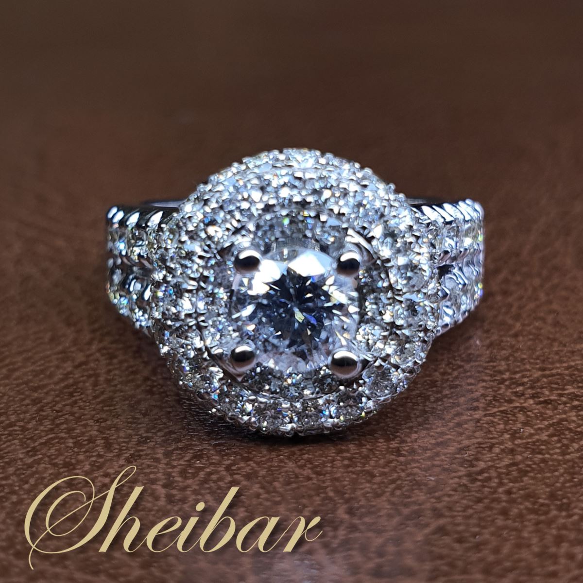 Diamond Engagement Ring - Model: Donuts. Large ring, prestigious, magnificent and high quality. Made of 18K gold gold throughout the ring including the head. In the center there is a beautiful natural center diamond, which is divided into 2, with a diamond above 3 pts each diamond and a tip of the head reminiscent of "donuts" with 3 rows of diamonds in 3 different sizes. Donuts promises to leave you speechless ...