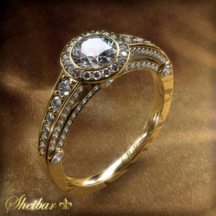 Engagement rings, model "Stefani". A unique and prestigious ring, not for the faint of heart. A ring studded with diamonds in all its upper half of all sizes, a total of about 116 diamonds, and the ring profile can be seen in the shape of two arches encrusted with small diamonds that go from the ring to the center. There is a line of diamonds embedded in different sizes from the smallest to grow in the form of a rail, on the upper part of the ring is the central diamond, and around it are other small diamonds, the ring itself is composed of 3 different parts that complement the perfect result of this ring. its a ring that you just cant missed