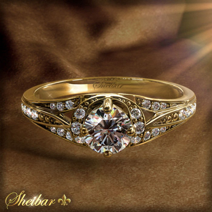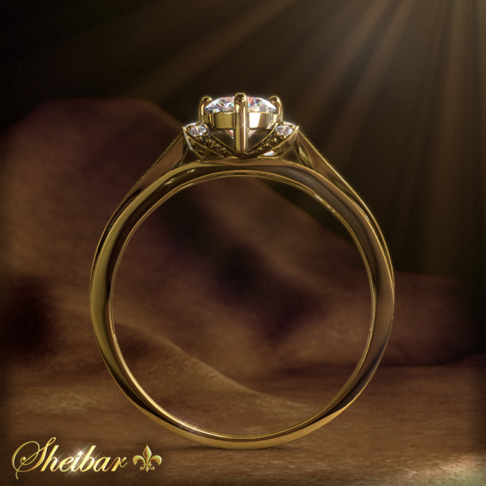 Yellow Gold Engagement Rings "Delor". The ring is rich in design, impressive and unique in its beauty. This unique ring begins as a gold hoop and at the top of the ring splits into three delicate and beautiful parts that hold the head of the central diamond. The small diamonds are embedded on both sides of the ring and are embedded along the split of the ring, thus creating a small split of 3 lines of diamonds in an amazing and high quality design. Very high level finishing and finishing work.