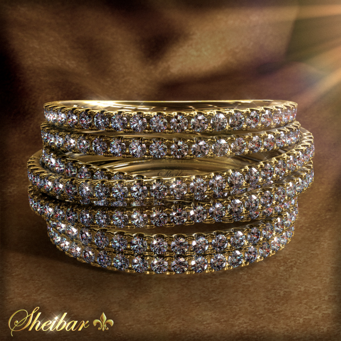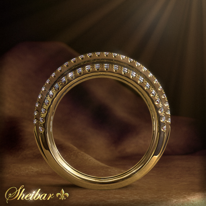 Magdolina" diamond ring, designed and prestigious ring. The most striking and beautiful thing about this ring is the number of arches in the ring and also the special form of work. In this ring there are about 8 delicate arches of gold, smooth and impressive, while it can be seen that two arches "deviate" from their symmetry and rise above the rest of the arches, thus creating the uniqueness and beauty of this work. On each "arc" of gold, diamonds are embedded with the special "Avdec" method. The total amount of diamonds embedded in this ring is about 210 beautiful white diamonds, and the workmanship was done by hand, clean and precise, in order to maintain the symmetry and accuracy of the ring