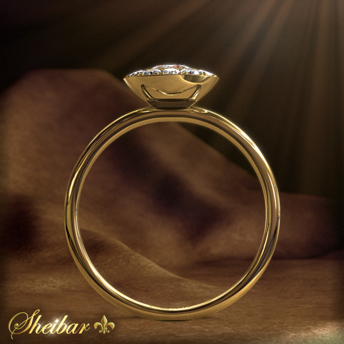 "Aspan" Diamond Ring. A ring studded around the center diamond with small white diamonds. The ring comes in a round shape and can be changed on demand in a square shape. At the top of the ring is the central diamond embedded in a "cup" embedded in the ring and surrounded by a thin, thin gold hoop (you can also remove the center diamond on demand). Beautiful and beautiful ring
