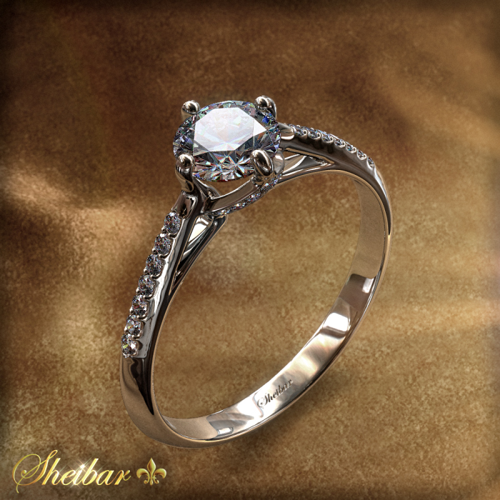 Engagement ring, "Mini Lian" diamond ring. Classic ring with additions and touches of delicate and beautiful design. The ring is made in precise and smooth gold casting. The base of the ring starts wide and gradually, as the ring rises, it becomes thinner, in order to emphasize and emphasize the upper part of the ring and the large central diamond. From the ring profile you can see its special design, which looks like 2 loops that grab the ring head, and are also studded with diamonds. A classic ring filled with presence and prestige