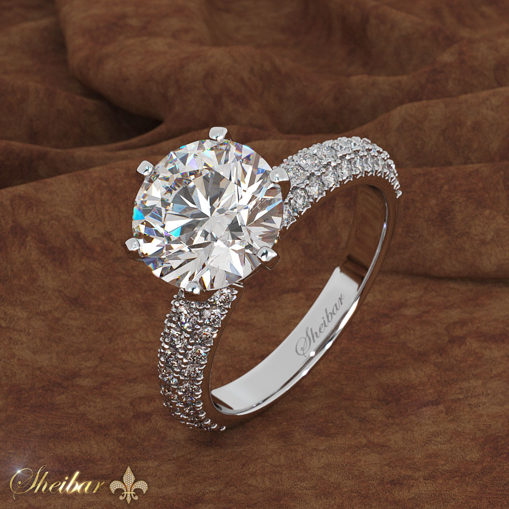 Engagement ring "Everest". A prestigious ring for people who like presence and jewelry that is definitely felt on the hand. The ring is made of solid gold, and is studded with 3 rows on each side of diamonds. The center of a 6-pronged head is encrusted with a natural diamond. An amazing breathtaking ring .