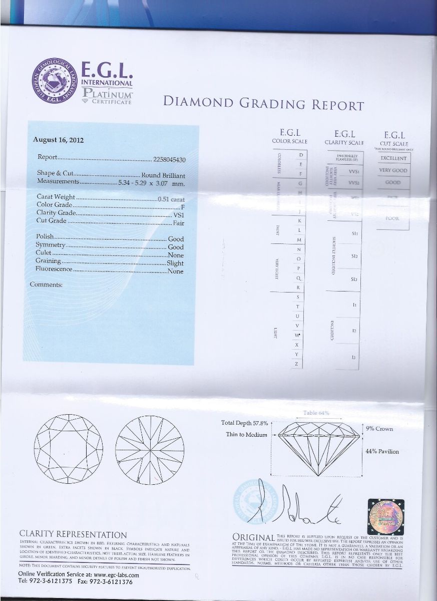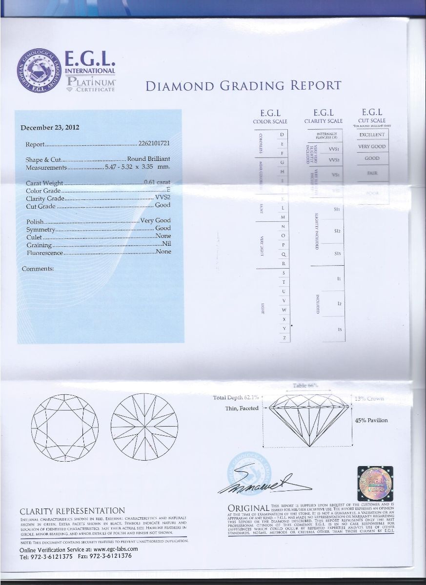 0.61 | E | VVS2 | Good | EGL | 1950 $ | |