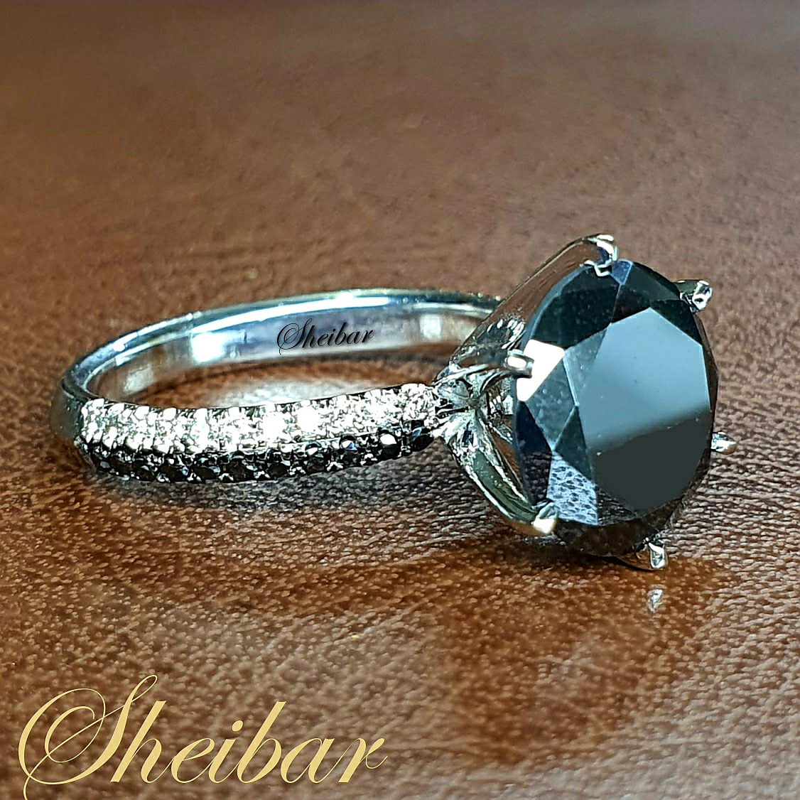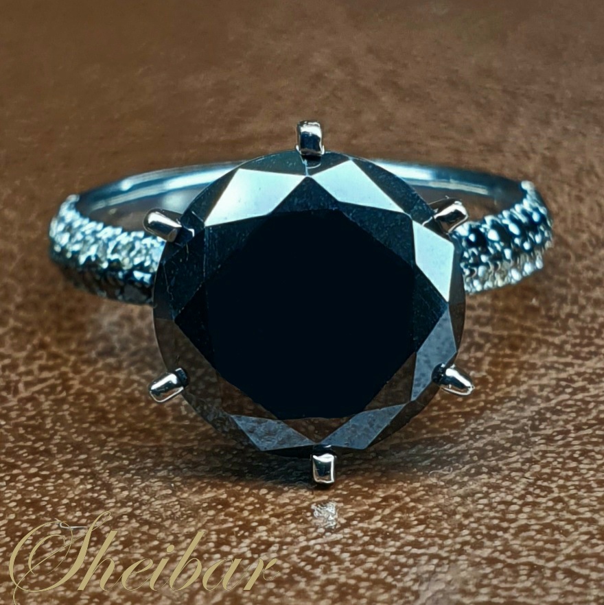 טבעות יהלומים שחורים, טבעת "בלאק מאונטן" טבעת יוקרתית בעיצוב מיוחד במינו. מבנה הטבעת הוא קלסי ועדין, כאשר הדבר המיוחד והשונה הוא שיבוץ היהלומים משני צידי הטבעת. כ-2 שורות של יהלומים מכל צד, כאשר ישנה שורה אחת יהלומים לבנים ושורה אחת יהלומים שחורים. השילוב בין היהלומים השחורים ללבנים נותן קונטרס מיוחד במינו ליהלומים ומבליט אותם בצורה יוצאת מן הכלל. הדבר המיוחד ביותר בטבעת הוא הראש המרשים והגדול בטבעת אשר מחזיק יהלום מעבדה שחור גדול השוקל כ-4.00 קראט. הראש המחזיק את היהלום המרכזי הוא עשוי מ-6 שיני זהב חזקות שמחזיקות את היהלום בצורת "כתר" מרשים ויפה. אחת הטבעות בעלי הנוכחות המרשימה ביותר ליהלום מרכזי. טבעת עוצרת נשימה...!!