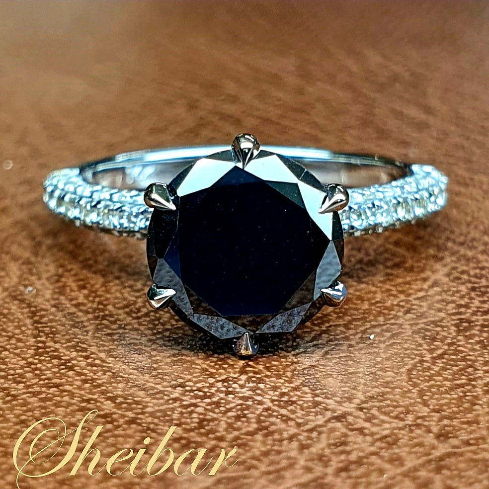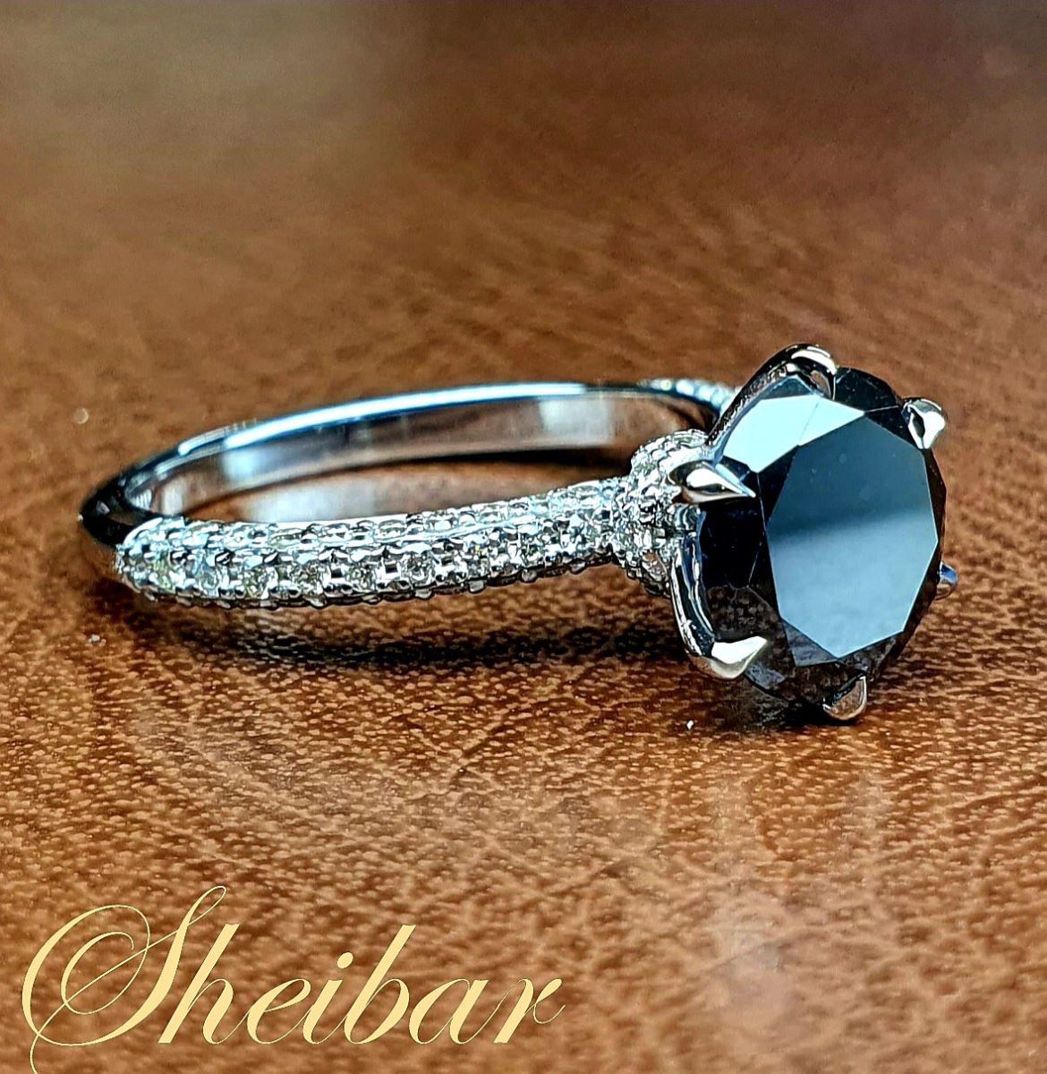טבעת אירוסין ויהלומים מעוצבת- מודל "ואניה". טבעת שבמראה ראשוני נראית כטבעת קלסית מרשימה. בפועל טבעת בעיצוב מיוחד ומרשים. משני צידי הטבעת ניתן לראות 3 שורות של יהלומים לבנים ויפים הנותנים נצנוץ יפה ומרשים מכל הזוויות שמסתכלים עליה. ראש הטבעת נעשה בעיצוב מיוחד, כאשר בסיס הראש עטוף במעגל יפה ועדין של יהלומים. כל זה כדי לתת דגם יפה ומרשים לראש הטבעת. במרכז הטבעת משובץ יהלום שחור מעבדה גדול ומרשים שמורם בשיבוץ גבוהה כדי להציג את היהלום בצורה מושלמת (ניתן לשבץ נמוך או גבוהה, הכל בהתאם להזמנה). טבעת מרשימה ויפה!