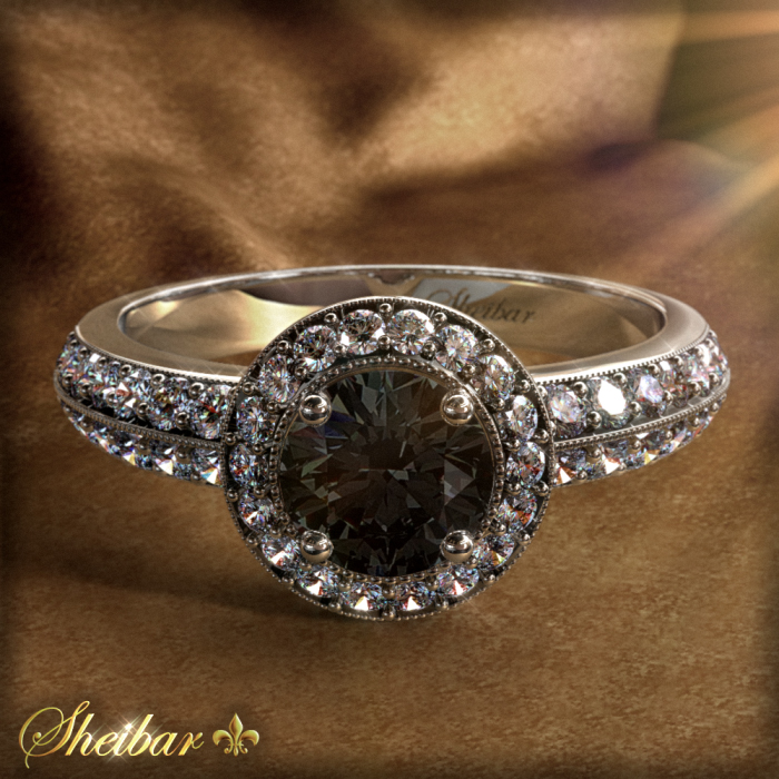 טבעת יהלומים המהממת "מרידיאן", בסגנון וינט’ג עם שילוב חדשני ומיוחד. טבעת מרשימה זו משובצת משני צידיה ב-2 שורות של יהלומים כשהשיבוץ נעשה בשיבוץ "וינטג’" בצורה סימטרית ואחידה. אם לא הסתפקנו ביהלומים בצידי הטבעת,הוספנו גם יהלומים בראש הטבעת, ניתן לראות שורה של יהלומים יפים ומרשימים מסביב ליהלום המרכזי המדגישים את נוכחותו של היהלום בטבעת מיוחדת זו. בקצה פירמידה מרשימה זו, נמצא הדובדבן שבקצפת שהוא היהלום המרכזי השחור ששובץ באמצעות 4 שיניים המרימים את היהלום המרכזי מעל כולם ונותנים לו הופעה מיוחדת במינה. ללא ספק טבעת שלא ניתן לפספס..!