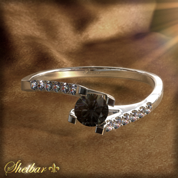 טבעת מדהימה קלאסית עם טוויסט עדין משובצת ביהלום מרכזי שחור על גבי 4 שיני זהב בטוויסט ובצידי הטבעת 12 יהלומים בשיבוץ שיניים. עבודת הזהב נעשתה בעדינות רבה וזאת בכדי לשמור על עיצובה ועדינותה של הטבעת. ליטוש הזהב נעשה בצורה חלקה ומבריקה ובכך מפיקה נצנוץ גם מהזהב שבטבעת וכן גם מהיהלומים שלה. טבעת עדינה ומרשימה ביופייה.
