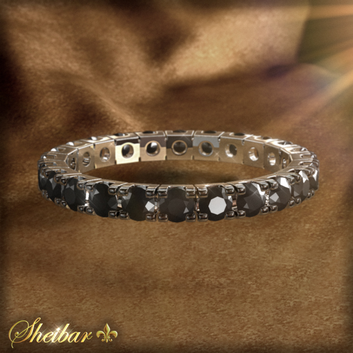 טבעות יהלומים שחורים, טבעת גלגל לייזר המשובץ סביב כל אורכו ביהלומים. מודל מיוחד זה של טבעת נעשה בעבודת לייזר מדוייקת וגבוהה, זאת בכדי לשמור על רמת גימור וסימטריות גבוהה לכל אורך התכשיט ובכך לוודא שכל היהלומים יהיו זהים לכל אורכו. בטבעת משובצים כ-24 יהלומים שחורים גדולים, שמשקלם הכולל הוא כ-1.20 קראט. תכשיט יפה ומרשים, אותו ניתן לענוד גם כטבעת נלווית וגם כטבעת בפני עצמה.