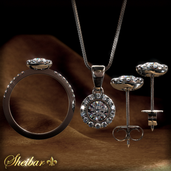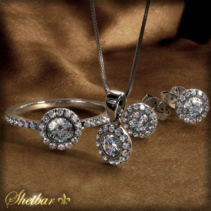 סט יהלומים מהמם ואיכותי הכולל טבעת -עגילים-ותליון מזהב ויהלומים