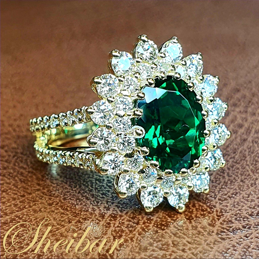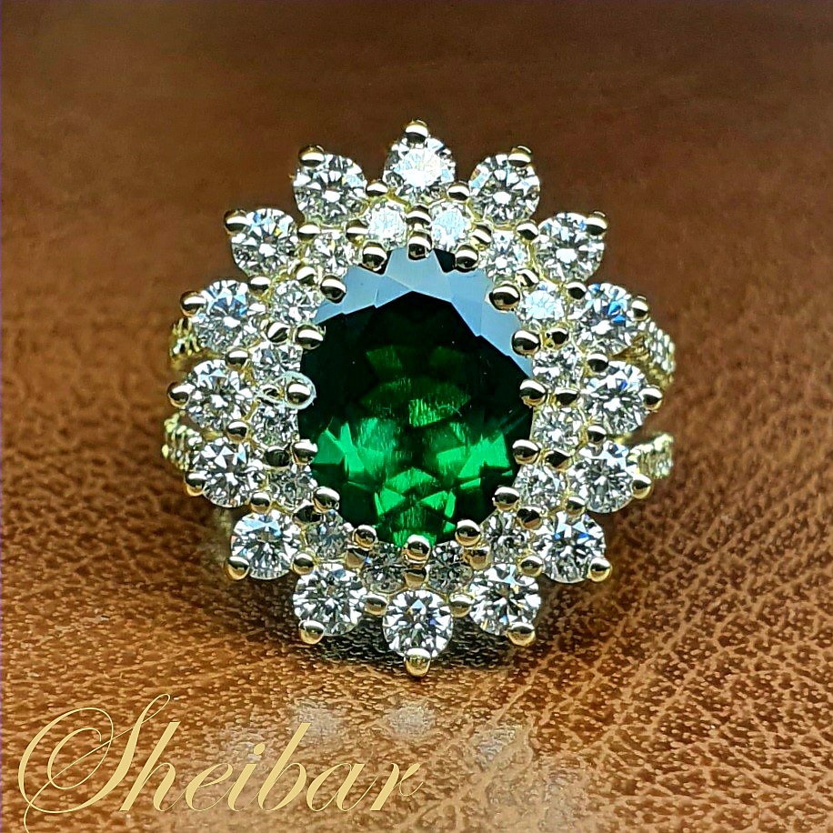 טבעות יהלומים ואבני חן, טבעת אליזבט. טבעת המעוטרת כולה ביהלומים לבנים ויפים במגוון גדלים שונים. זו למעשה הטבעת המשודרגת לטבעת "דיאנה" המוכרת. כאשר הוספנו שורה נוספת של יהלומים גדולים יותר מסביב לאבן חן המרכזית "אמרלד" מעבדה, ובכך ניתן להבחין בעוצמה ונוכחות רבה יותר מאי פעם..! הטבעת נעשתה ביציקה מיוחדת לטבעת, ולאחר מכן עוברת חידודים ופוליש נוספים בכדי לשמור על איכות ורמת טבעת מהגבוהות ביותר. מתחת לכל היהלומים הקטנים ניתן לראות את "קשתות" הזהב המחזיקות את כל היהלומים אשר נעשו בעבודה חדה, סימטרית ומדויקת ביותר! ללא ספק אחת הטבעות היותר עוצמתיות ובעלות נוכחות שיש...