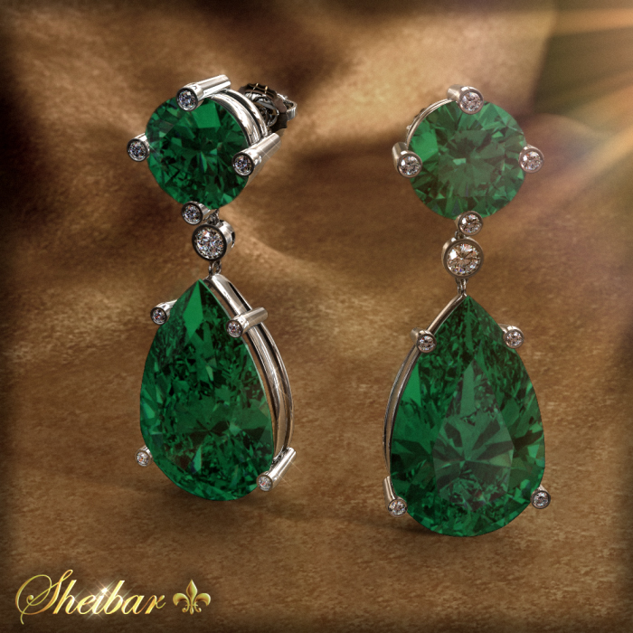 עגילי אמרלד ויהלומים, עגילים מיוחדים אלו הם נעשו בעיצובה של אנג’לינה ג’ולי האחת ויחידה. עגילים מדהימים וייחודיים ביופיים. עגילים עוצרי נשימה המשובצים אבני חן אמרלד (מעבדה מתורבת) השוקלים כ-40.0CT של אבן חן, בעבודת חיתוך יוצאת מן הכלל ומדויקת להפליא. עגילים אלו מלווים ביהלומים לבנים בצידי התכשיט . עגילים עם נוכחות רבה שלא ניתן לפספס בשום מצב. תכשיט יוקרתי עוצר נשימה...!!!