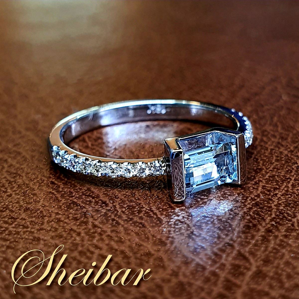 טבעת יהלומים ואבן חן- טבעת אמרלד בלו טופז. טבעת קלסית מיוחדת ושונה. מה ששונה ומיוחד בטבעת הזו הוא למעשה הצורה שבה יושבת האבן המרכזית במרכז הטבעת. היא משובצת לאורך הטבעת ולא לרוחב הטבעת (שלא כמו רוב הטבעות). מה שנותן לה עיצוב שונה ומיוחד. בנוסף הצבע של האבן חן התכלת והצלול שלה נותן גוון יפה ועדין לטבעת. משני צידי הטבעת משובצים יהלומים לבנים ויפים שמוסיפים לנצנוץ היהלום. מתנה מהממת לכל ארוע! ניתן להזמין את האבן חן בצבעים שונים