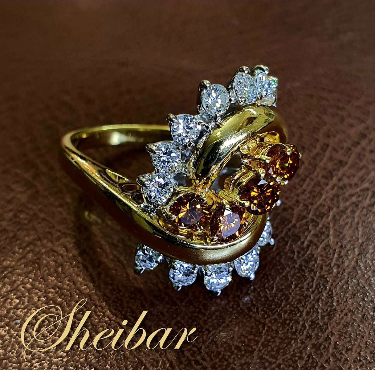 טבעת יהלומים ואבני חן-טבעת פנסי כתום. טבעת מעוצבת ומיוחדת שנעשתה בעבודת יד ייחודית. עבודת הזהב נעשתה בעבודת יד מדויקת ואיכותית כדי לשמור על כל הזוויות ועיצוב הטבעת בצורה מושלמת ונקייה. הטבעת עצמה משלבת גם זהב לבן וגם זהב צהוב. כל זה כדי שהזהב הלבן יבליט את היהלומים הלבנים, והזהב הצהוב יבליט את הגוון הפנסי של היהלומים הכתומות. טבעת מעוצבת ומיוחדת במינה. אחת במלאי בלבד!