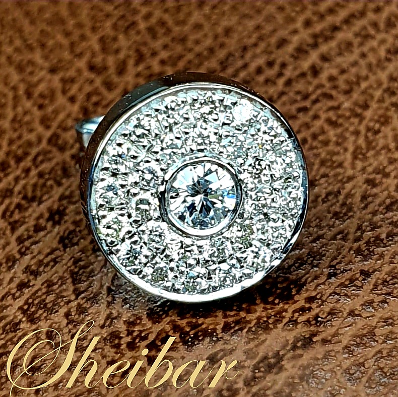 עגילי יהלומים צמודים- עגילי מגש יהלומים. עגילים קלסיים מלאים בנוכחות מרשימה. כל מסגרת העגיל משובצת במשטח שטוח ויפה של יהלומים נוצצים ויפים, מהמסגרת ועד המרכז. במרכז שיבצנו יהלום מרכזי מעט גדול יותר כדי שיוסיף לאפקט היפה והנוצץ של העגיל. בזכות השיבוץ הצפוף של היהלומים, רואים רק יהלומים מנצנצים (כמו שטיח נוצץ ויפה). עגיל קלסי יפה ומרשים. מתנה מושלמת.