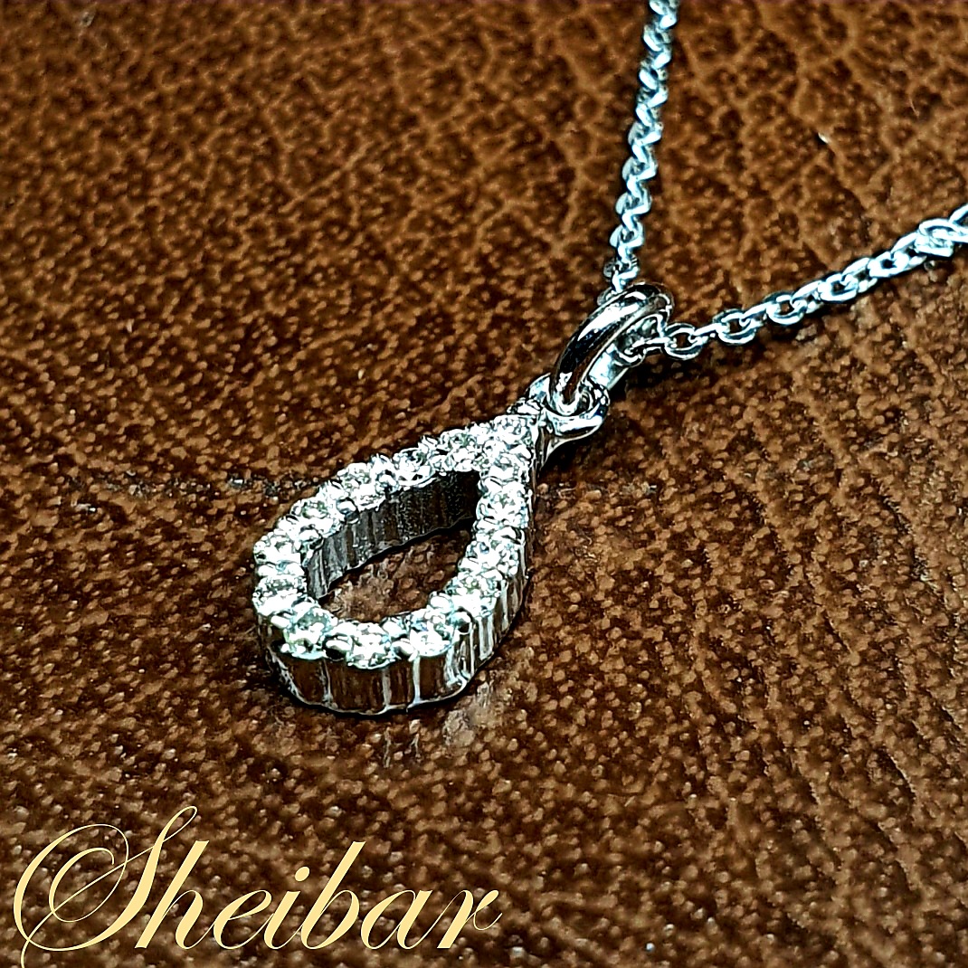 שרשרת יהלומים תליון טיפה. תליון עדין ויפה שמעוצב בצורת טיפה. התליון משובץ במעגל בצורה טיפה לכל אורכו ביהלומים. השיבוץ נעשה בשיבוץ שיניים עדין ויפה כדי למקסם את נצנוץ היהלומים. זהב לבן 14K. תליון קלסי עדין ויפה!