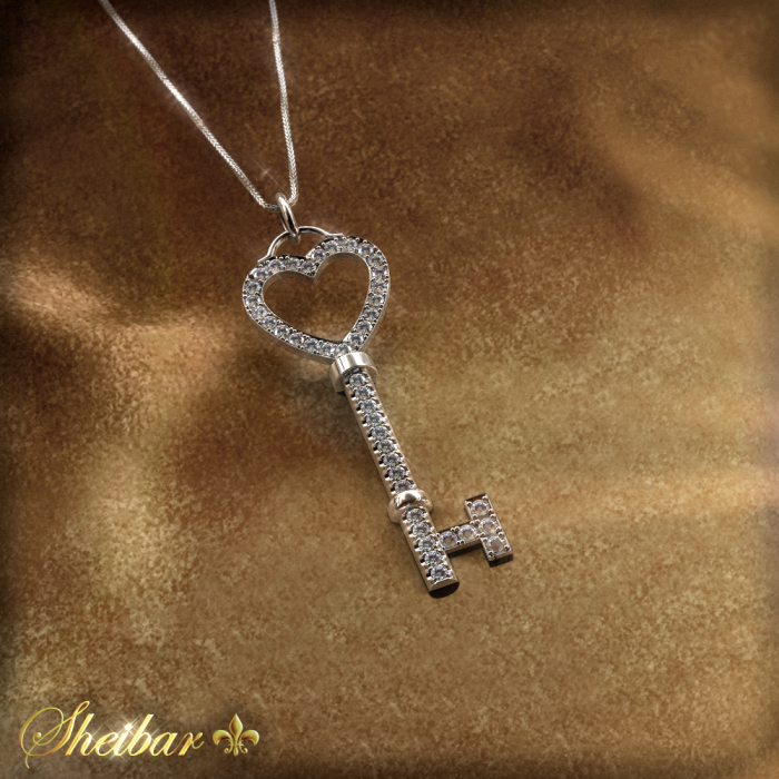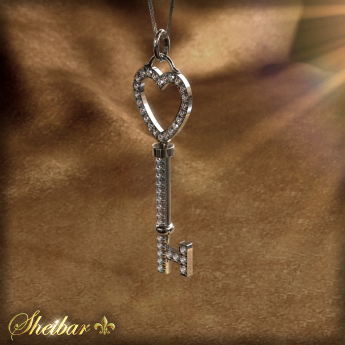 תליון "מפתח הלב", יפתח לכם את כל הדלתות שרק תרצו, עם עיצוב אישי ומיוחד. תחילה ניתן להבחין בראשו של המפתח המעוצב בצורת לב ומשובץ בשיבוץ "פווה". ראש זה מחבר את כל היהלומים לשורה אחת שלמה ונוצצת. מחלקו התחתון של הלב יוצאת שורה חלקה ועדינה של זהב מבריק, אשר עליו משובצים יהלומים בשיבוץ שיניים המבליטים את היהלומים בצורה מרשימה ביותר. הדבר החשוב ביותר בתכשיט זה הוא העבודה הנקייה והמושקעת בו, דבר המקנה עדינות ויוקרתיות לתליון. בנוסף מתלה עדין המחבר בין התליון לשרשרת. תליון ארוך ונופל לאישה המחפשת שילוב של תכשיט עדין, בעל נוכחות מרשימה ויפה.