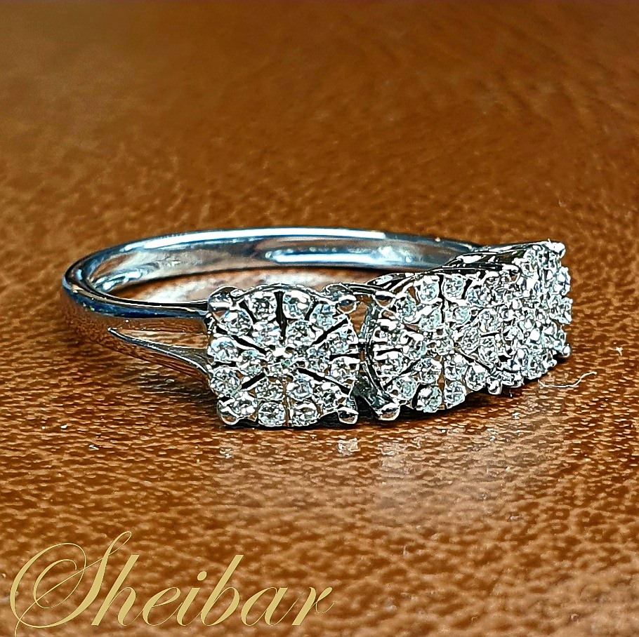 טבעת יהלומים מעוצבת ומרשימה- טבעת "3 כתרים". טבעת שנותנת אפקט מרשים ומנצנץ בזכות שיבוץ היהלומים. בראש הטבעת ניתן לראות 3 "ראשים" שבכל ראש משובצים במעגלים עדינים ויפים יהלומים ברמה גבוהה. הצפיפות של השיבוץ נותנת את הנצנוץ היפה והמרשים של היהלומים שנראים כמו "שטיח" יהלומים. בנוסף בגלל השיבוץ הצפוף זה נותן נראות של 3 יהלומים גדולים שנמצאים אחד ליד שני. טבעת מרשימה ויפה!