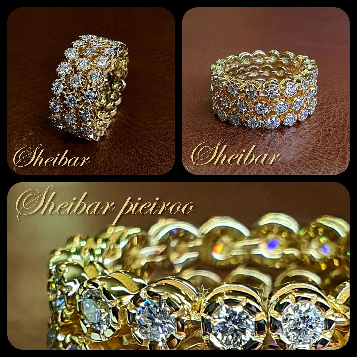 טבעות יהלומים מעוצבת פיירו- מודל פיירו 3 שורות. טבעת שלא ניתן לפספס על שום יד. מודל שנעשה לפני הכל בעבודת מחשב מדויקת כי לשמור על גימורים ומידות מדויקות. כל "כוס" שמחזיקה יהלום למעשה עשויה מ-8 שיני זהב ממש קטנות, גם כדי שהיהלום יהיה מוחזק בצורה חקה ובטוחה, וגם כדי לתת את העיצוב המיוחד שמדמה פרחים קטנים משובצים יהלומים. כל "כוס" זהב למעשה פתוח מחלקו האחורי, וזאת כדי לתת פתח ליהלומים ובכך לאפשר להם להגיע לנצנוץ מרבי. הטבעת משובצת לכל האורך שלה ביהלומים, ההתרון הוא שגם כשהטבעת מסתובבת על האצבע תמיד נמשיך לראות יהלומים. ללא ספק טבעת מרשימה ביופייה.