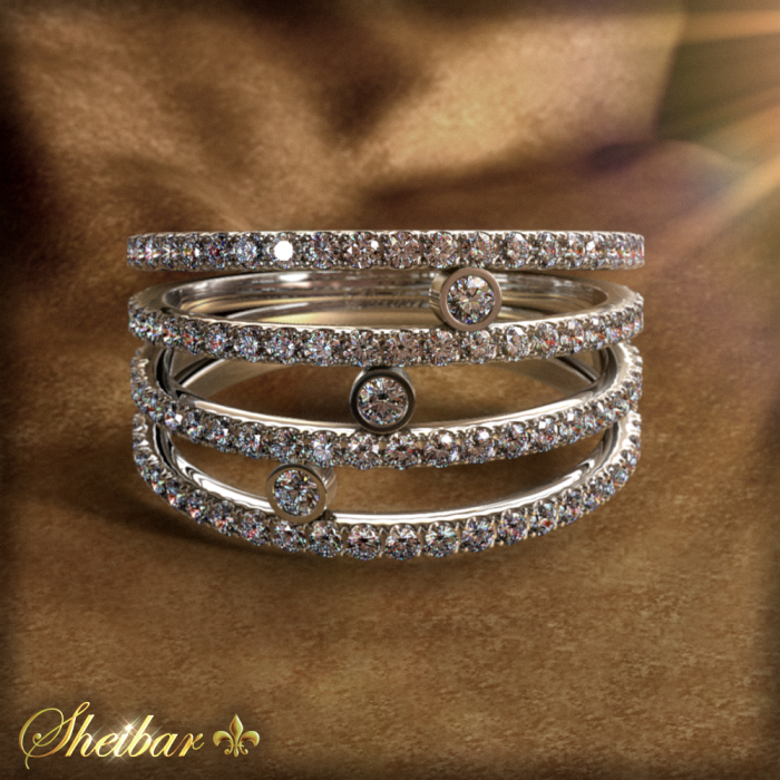 טבעת יהלומים "עונות", טבעת מעוצבת ויוקרתית. בטבעת זו ניתן לראות בראש ובראשונה את מבנה הטבעת ורוחבה המתפרשת על גבי שטח גדול של האצבע. טבעת זו נעשתה באמצעות יציקה מיוחדת בכדי לשמור על סימטריות גבוהה. על גבי הטבעת נמצאים כ-4 שורות של זהב מבריק ויפה של 18K בכדי לשמור על יוקרתיות הטבעת. על 4 שורות זהב עדינות אלו משובצים כ100 יהלומים לבנים ויפים, אשר שובצו בשיבוץ "שיניים", כל זאת בכדי לדאוג שרמת הנצנוץ של היהלומים תישאר גבוהה ויפה. בין כל "עונה" ניתן לראות בנוסף יהלום גדול יותר המשובץ בשיבוץ "כוס" בצורה אלכסונית. ללא ספק טבעת בעלת נוכחות רבה ובו בזמן שומרת על עדינות וייחודיות.