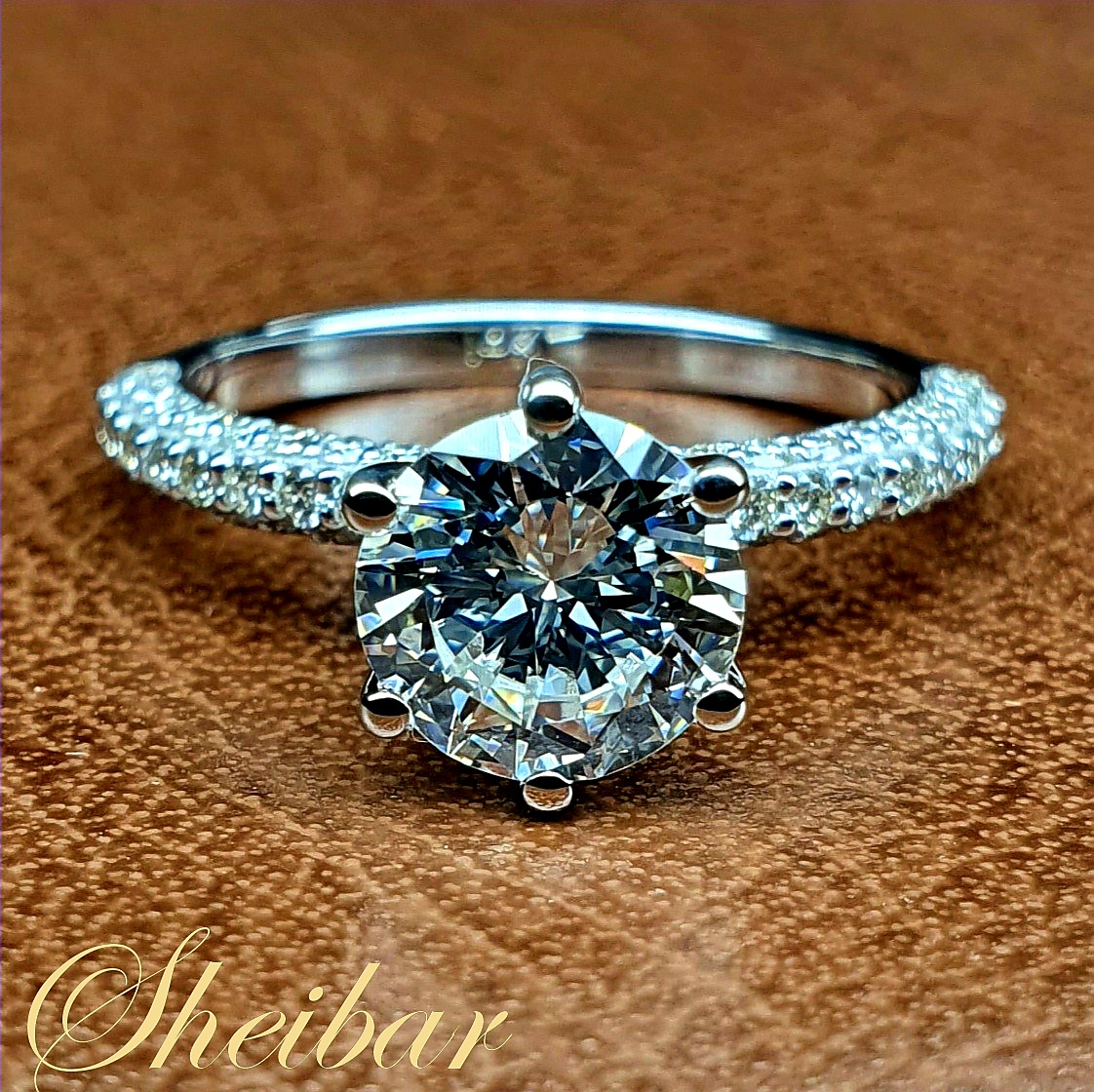 טבעת אירוסין מעוצבת יהלום מעבדה - מודל "ואניה". טבעת שבמראה ראשוני נראית כטבעת קלסית מרשימה. בפועל טבעת בעיצוב מיוחד ומרשים. משני צידי הטבעת ניתן לראות 3 שורות של יהלומים לבנים טבעיים ויפים הנותנים נצנוץ יפה ומרשים מכל הזוויות שמסתכלים עליה. ראש הטבעת נעשה בעיצוב מיוחד, כאשר בסיס הראש עטוף במעגל יפה ועדין של יהלומים. כל זה כדי לתת דגם יפה ומרשים לראש הטבעת. במרכז הטבעת משובץ יהלום מעבדה גדול ומרשים שמורם בשיבוץ גבוהה כדי להציג את היהלום בצורה מושלמת (ניתן לשבץ נמוך או גבוהה, הכל בהתאם להזמנה). טבעת מרשימה ויפה!