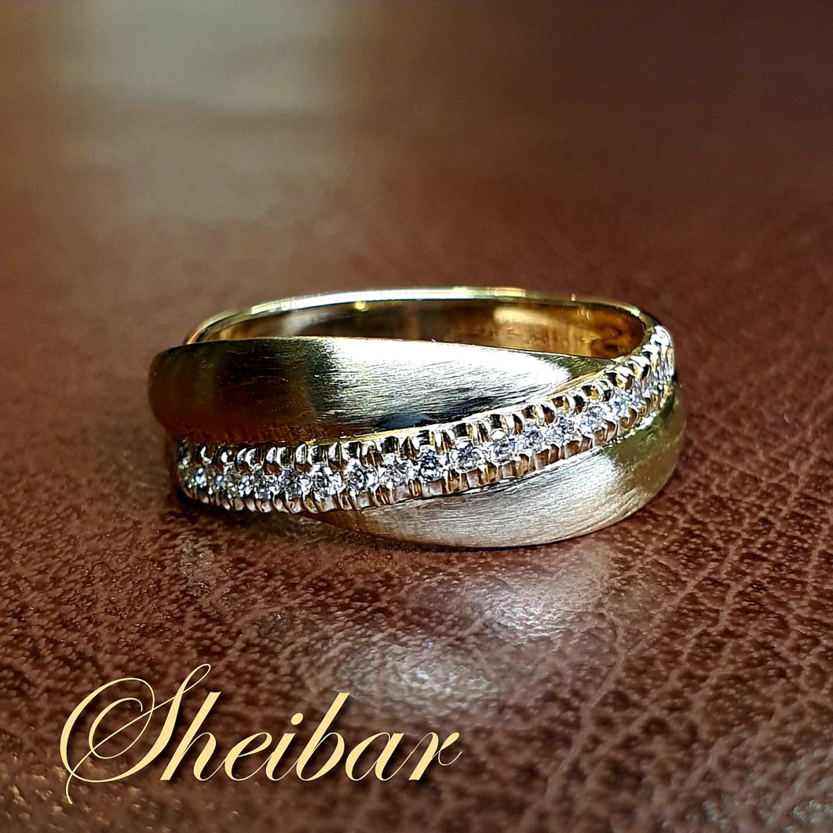 טבעת יהלומים זהב צהוב- מודל גל יהלומים. טבעת יפה ומעוצבת המשלבת נוכחות של יהלומים וזהב. בראש הטבעת ניתן לראות זהב משני צידי הטבעת בעבודת "מט" עדין של הזהב. במרכז הזהב עובר פס דק ועדין של יהלומים שנותנים ניגודיות לזהב ובכך מבליטים את היהלומים בצורה עדינה ויפה. הטבעת עשויה מזהב 14K מלא. טבעת מעוצבת ויפה