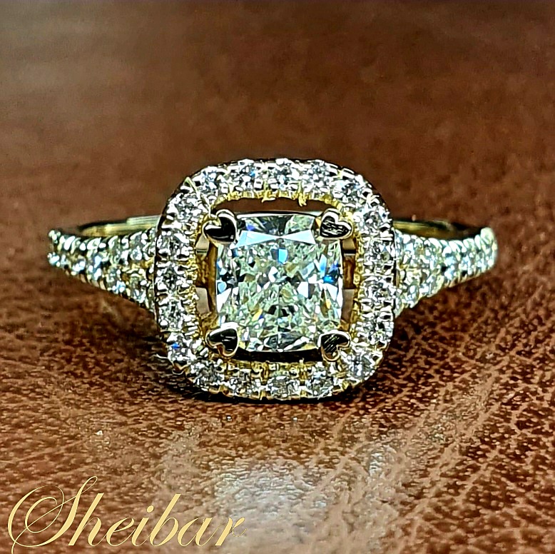 טבעת יהלומים מיני שילד סוליטר, טבעת מעוצבת ומרשימה. עיצוב הטבעת מתחיל בבסיס הטבעת כאשר הוא מתחיל כשורה אחת ובחלקו העליון מתפצל ל-2 שורות זהב. ממרכז הטבעת מתחיל שיבוץ היהלומים, כשגם לאורך פיצול הטבעת משובצים יהלומים. רטש הטבעת נעשה בצורת "חושן" (כרית) יהלומים. כאשר כל המסגרת משובצת גם כן ביהלומים. במרכז הטבעת משובץ יהלום בליטוש מיוחד של "CUSHION" (ניתן גם לשבץ יהלום בליטוש ריבוע או עגול לפי הזמנה). טבעת מעודנת אך מלאת נוכחות ונצנוץ.
