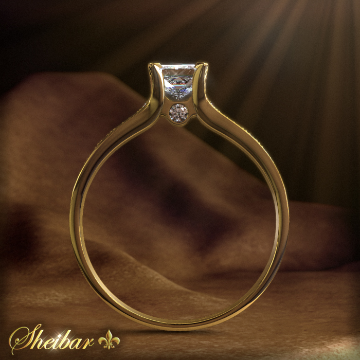 טבעות אירוסין יהלום מרובע, מודל "נסיכה". עבודת הזהב של הטבעת נעשתה כמקשה אחת בעוד שהטבעת מתחילה כחישוק ומתפתלת בחלקה העליון על מנת להרים את היהלום המרכזי בצורה המרשימה ביותר. שיבוץ היהלומים בצדדים נעשה בשיבוץ "פווה" של 3 שורות יהלומים בשני צידי הטבעת עד לחלקו העליון שלה. בנוסף בראש הטבעת ישנו יהלום אחד משובץ בשני צידי הפרופיל. בראש הטבעת משובץ יהלום מרובע "PRINCESS" המקביל ברוחבו לטבעת במטרה לשמור על רמת סימטריות מדויקת וייחודיות לטבעת.