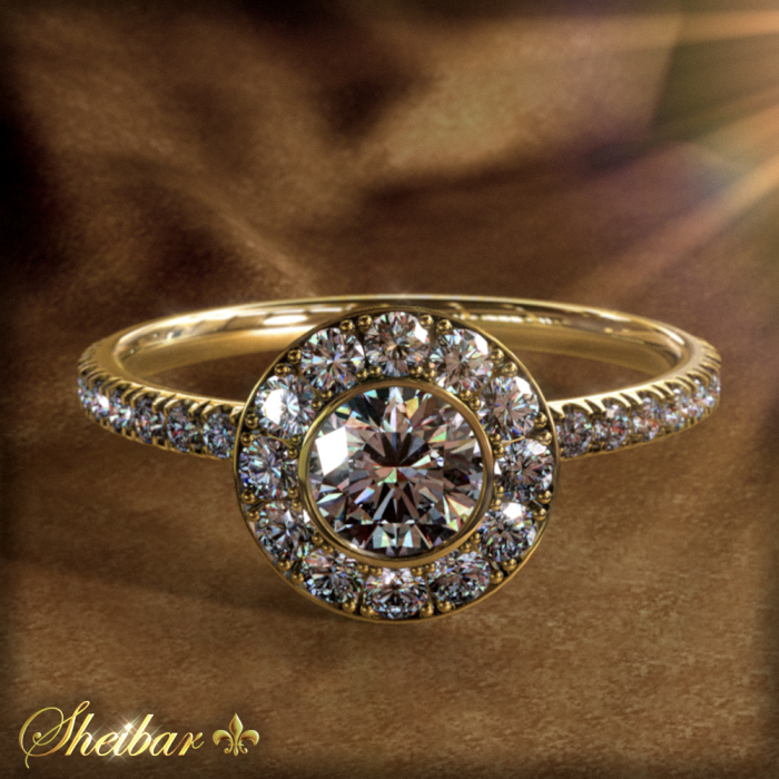 טבעות אירוסין, מודל "אספן". טבעת המשובצת משני צידיה ביהלומים קטנים ולבנים, המשובצים בשיבוץ שיניים. חישוק הטבעת מגיע בצורה עגולה וניתן לשינוי לפי דרישה לטבעת בצורה מרובעת. בראש הטבעת ישנו היהלום המרכזי המשובץ בשיבוץ "כוס" המוטבע בתוך הטבעת וסביבו חישוק עדין ודק של זהב,(ניתן בנוסף להוציא את היהלום המרכזי עם שיבוץ שיניים לפי דרישה). מסביב ליהלום המרכזי ניתן לראות שורה אחת של יהלומים קטנים המקיפים את היהלום המרכזי ובכך מוסיפים תחושה של גודל לראש הטבעת. טבעת עדינה ויפה.