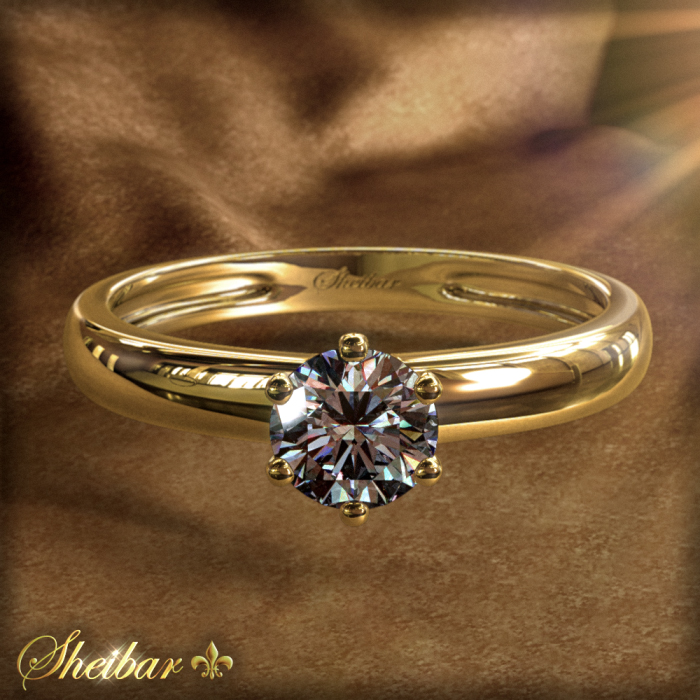 טבעת אירוסין יהלום "שונטל בומביי". עשויה K18 טבעת זו היא מסוג הטבעות הקלסיות המרשימות ובעלות נוכחות גדולה. החלק העיקרי בטבעת הוא היהלום המרכזי והמרשים. יהלום זה מורם באמצעות 6 שיניים עדינות ויפות המחזיקות את היהלום כמו "כתר" מרשים ויוקרתי. עבודת הזהב נעשתה בצורה עדינה ועגולה בכדי לאפשר ענידה נוחה של הטבעת. זהב נקי, חלק ויוקרתי.
