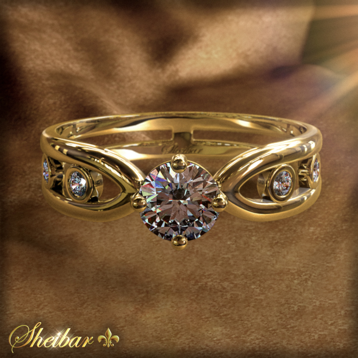 טבעות אירוסין, מודל "שוויניון" לאישה, ללא ספק טבעת שלא ניתן לראות על כל אצבע..! טבעת זהב, כאשר מחלקה התחתון יוצאים 2 פסים עדינים ויפים משני צידי הטבעת העולים כלפי מעלה עד מפגשם בראש הטבעת. בזמן הפיצול של הזהב ניתן לראות 2 יהלומים קטנים מכל צד המשובצים בשיבוץ "כוס" המיוחד שמפריד ביניהם ונותן לכל אחד מהיהלומים את מלוא תשומת הלב. בראש הטבעת ניתן לראות מעגל עדין של זהב, שממנו יוצאות 4 שיניים עדינות של זהב במטרה להחזיק את היהלום המרכזי והמיוחד שבו.