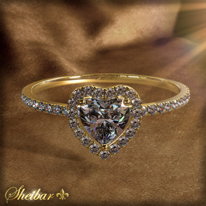טבעות אירוסין ויהלומים, טבעת "לב מאוהב" בעיצוב עדין ומרשים. טבעת קלסית ומיוחדת במינה. בסיס הטבעת הוא חישוק זהב עדין וחלק, אשר עליו משובצים משני צידי הטבעת יהלומים יפים ולבנים הנותנים אפקט עדין וקסום לטבעת. בראש הטבעת ניתן לראות "בית" מאוד מיוחד שנעשה ביציקה מיוחדת בצורת לב. הבית עצמו מוגבה במקצת בכדי לתת מקום ליהלום לשבת בתוכו. ה"בית" בצורת הלב נעשה בעבודה מאוד מדויקת בכדי שיתאים בצורה מושלמת ליהלום בליטוש לב במטרה שישב במדויק בתוכו. במרכז התכשיט משובץ היהלום המרכזי שמגיע בליטוש בצורת לב, המוחזק באמצעות 3 שיניי זהב עדינות ויפות. ללא ספק טבעת בעיצוב מרשים ויוקרתי, ומיוחדת במינה.!