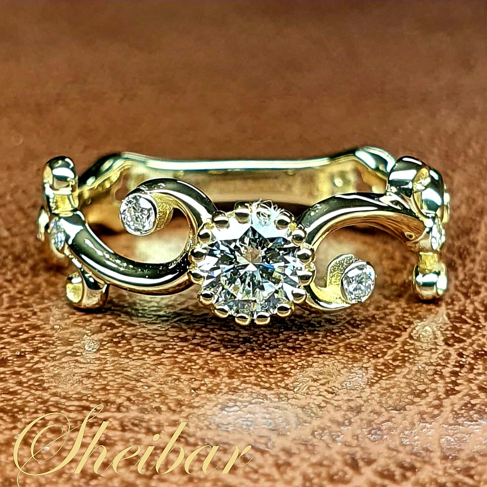 טבעת אירוסין דגם - "קיטי". אחת מסוגי הטבעות שלא קשה לראות עד כמה היא ייחודית. טבעת המעוצבת כולה בעלים עדינים הסובבים אותה, בעוד שניתן לראות שחלקם הם עלי זהב עדינים ובחלקם האחר משובצים 4 יהלומים בקצה של כל עלה העלה. טבעת עדינה ובמקביל מפגינה יוקרתיות רבה ומאוד מרשימה. בראש הטבעת ניתן לראות את היהלום המרכזי המשובץ כולו בשיניים קטנות ועדינות, כאשר כל השיניים מוצמדות זו לזו ובכך נוצר ראש מיוחד במינו לטבעת. טבעת שעוצבה בעבודת יד ייחודית וקפדנית. טבעת מיוחדת לאישה מיוחדת...